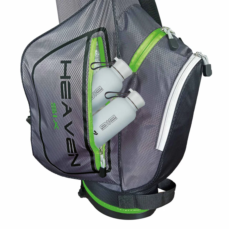 Die Heaven Six eignet sich perfekt für Golfer, die sich ihre Schläger schnappen und sofort loslegen wollen. Mit einem 3-Way-Top, ultraleichtem Gewicht und 5 geräumigen Taschen nimmt die Heaven Six mühelos ein Halb-Set auf und bietet zusätzlich noch viel Platz für Zubehör. 3-fach durchgehender Divider Top Größe: 6,5 inches 4 große Staufächer 1 praktisches Wertfach Kühlfach Regenschirmhalter Handtuch- und Handschuhhalter Leg Lock System Strap fix Ultra leichtes Gewicht: 1,4 kg