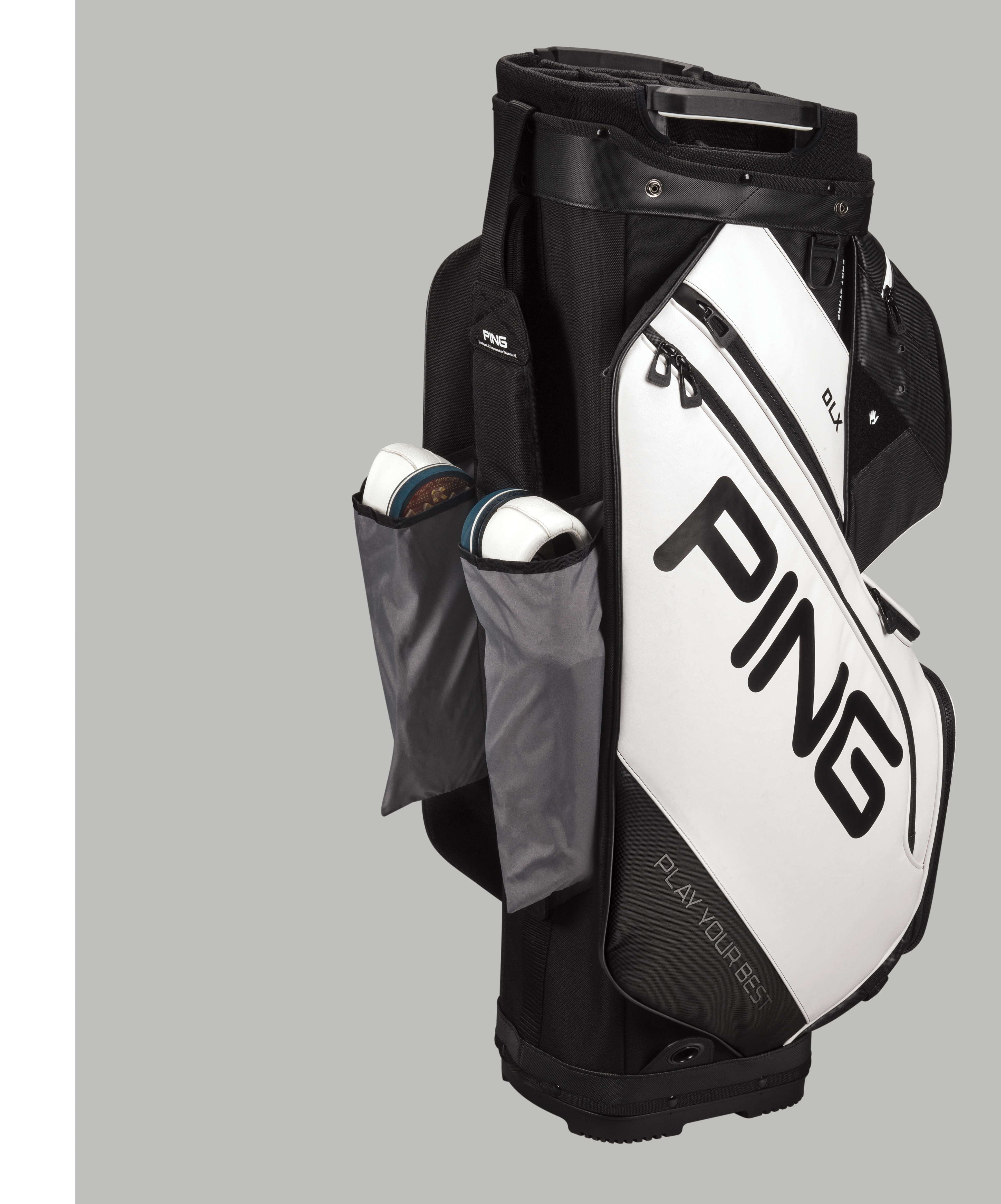 Wenn Sie mehr zu verstauen haben, bietet die robuste, voll ausgestattete DLX Cartbag mit 15 Taschen das meiste aller PING-Taschen. Verfügt über eine 15-Wege-Öffnung und zwei einsetzbare Schuhtaschen, die sich für Ihren Schuhwechsel vor und nach der Runde als praktisch erweisen werden. Die äußerst strapazierfähige Vinyl-Außenseite mit Nadelstruktur lässt sich leicht reinigen und ist für eine lange Lebensdauer vorgesehen.