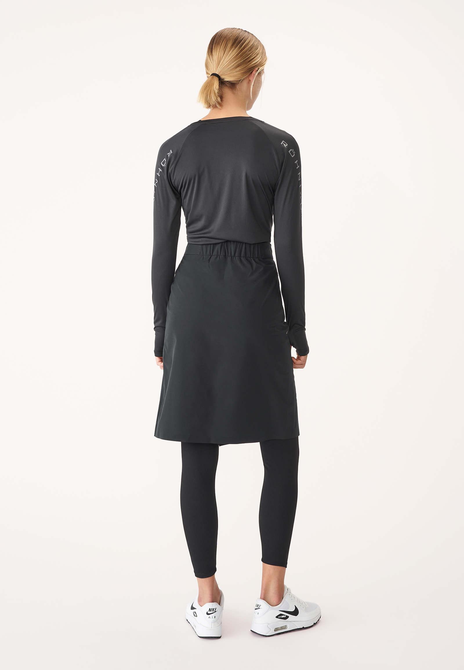 Der Storm Rain Skirt ist ein regenfester Golfrock mit verschweißten Nähten und Reißverschlüssen zum Golfen bei regnerischem Wetter. Der Rock ist winddicht und wasserdicht bis zu einer Wassersäule von 10.000 mm. Durch den 2-Wege-Stretch des Rocks entsteht viel Bewegungsfreiheit, zudem ist das Material sehr atmungsaktiv. Eine gute Wahl als Lage über der Golfkleidung, für alle, die praktischen Regenschutz auf und auch abseits vom Golfplatz wünschen. Frei von Fluorkohlenwasserstoffen, die Oberfläche wurde mit einer biologisch abbaubaren Membran behandelt.