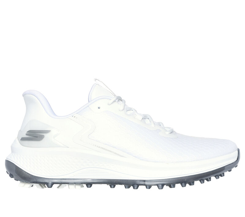 Die besten Komfort-Technologien auf dem Platz – mit den Skechers Slip-Ins®: GO GOLF® Blade GF – Slip-Ins. Dieser wasserdichte Golfschuh mit dem exklusiven Skechers Fersenkissen (Heel Pillow) verfügt über ein Obermaterial aus Synthetik mit Schnürung vorne, eine leichte Resamax™ Innensohle, eine ECO FLIGHT® Dämpfung und eine GRIPFLEX™ Laufsohle ohne Stollen für hohe Traktion.
