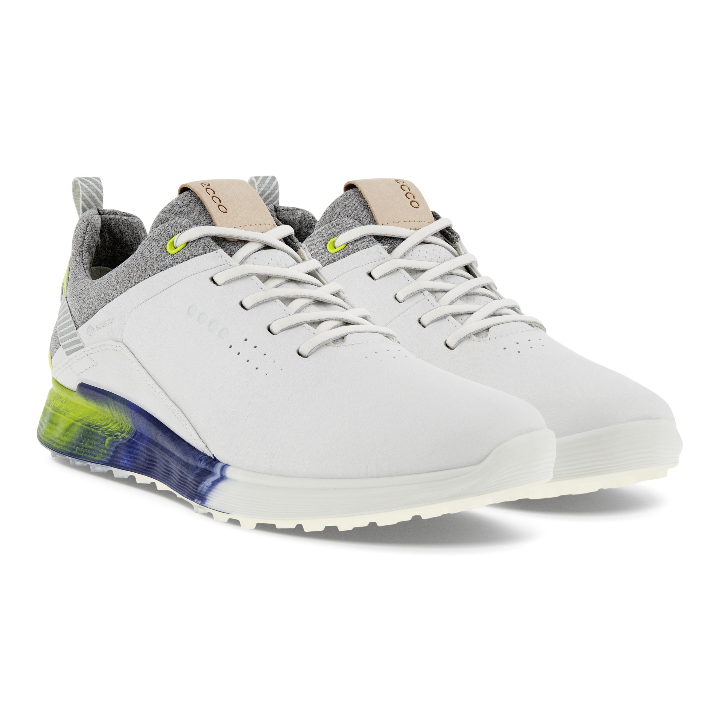 In einer Kombination aus Golf-Performance und Freizeit-Styling bietet der wasserdichte ECCO M GOLF S-THREE Premium-Komfort beim Abschlag, im Clubhaus und bei allen anderen Aktivitäten. Dieser Hybrid-Golfschuh für Herren mit einer E-DTS®-Außensohle und GORE-TEX-Technologie bietet ausgezeichnete Bodenhaftung und Schutz vor Nässe. Die neuartige ECCO ZONAL FLUIDFORM™-Innovation sorgt für drei separate Stabilitätszonen in der Zwischensohle, die für ein optimales Gleichgewicht aus Dämpfung und Stabilität sorgt.