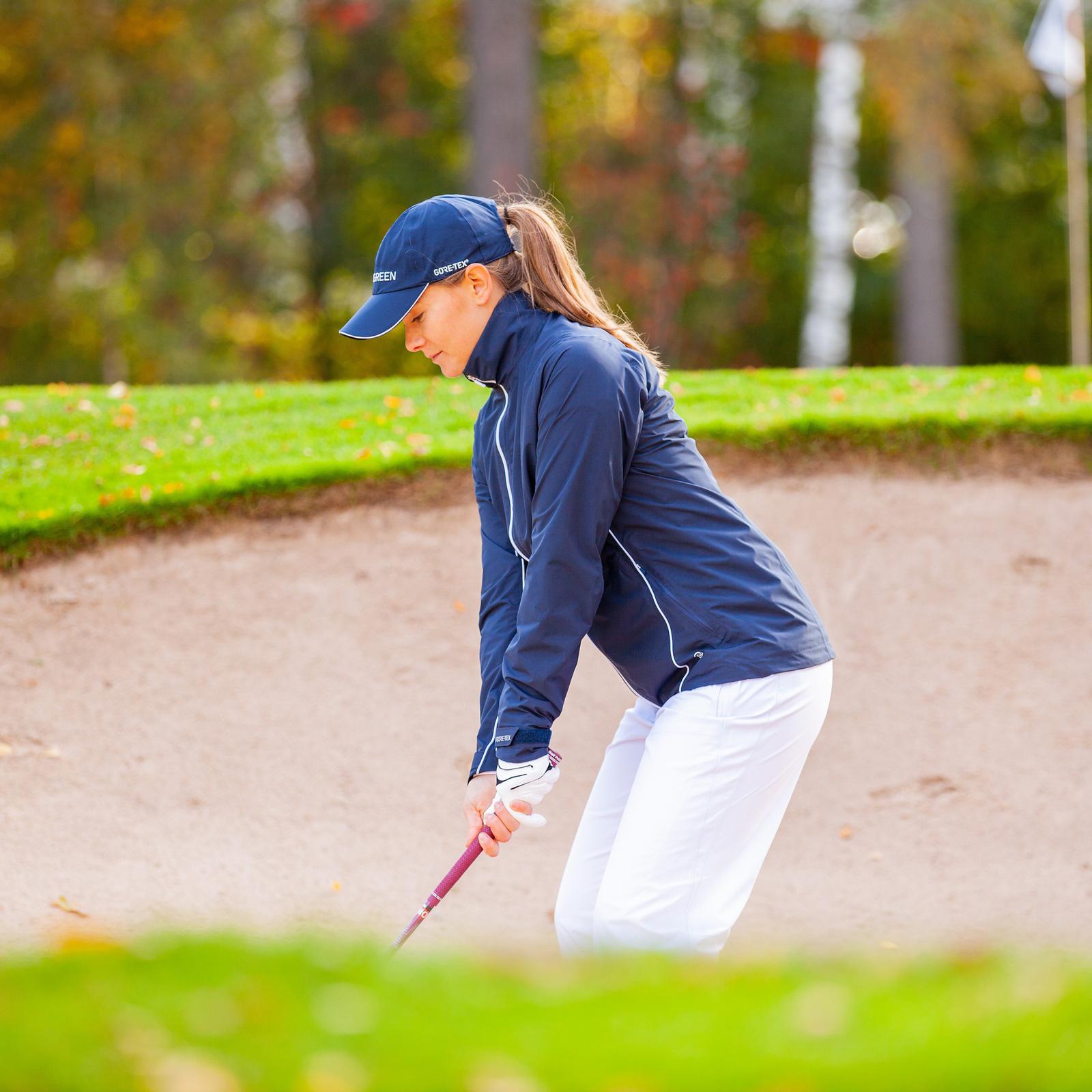 Wasserdichte Damen-Golfjacke aus GORE-TEX-Gewebe mit Netzfutter für alle die auch an schlechten und feuchten Tagen am Gofplatz troken bleiben möchten.