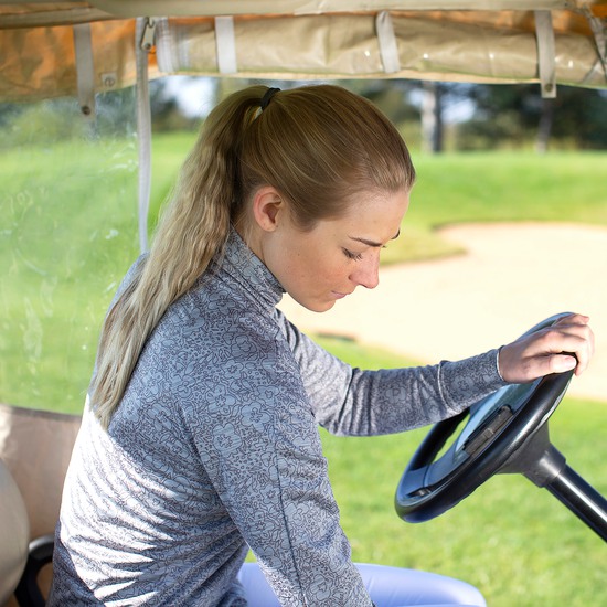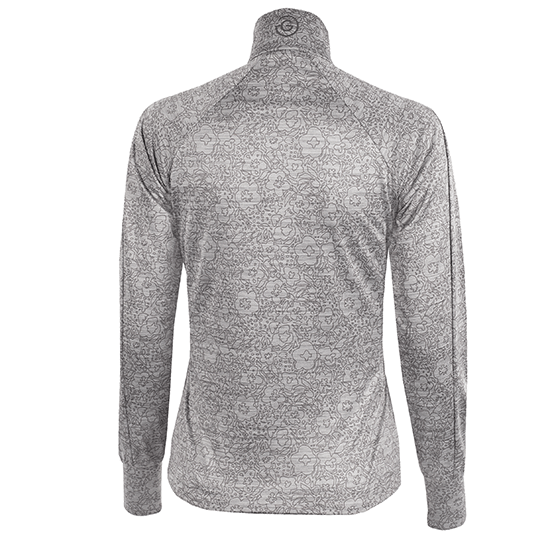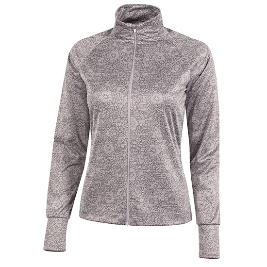 Ein Golfpullover mit vollem Reißverschluss, der die ideale Zwischenschicht zwischen Ihrer Jacke und Ihrem Hemd darstellt. Nimmt wenig Platz in Ihrer Golftasche ein, wenn er nicht mehr benötigt wird. Das gedruckte Design hat ein Blumendekor, das es schön und feminin macht.