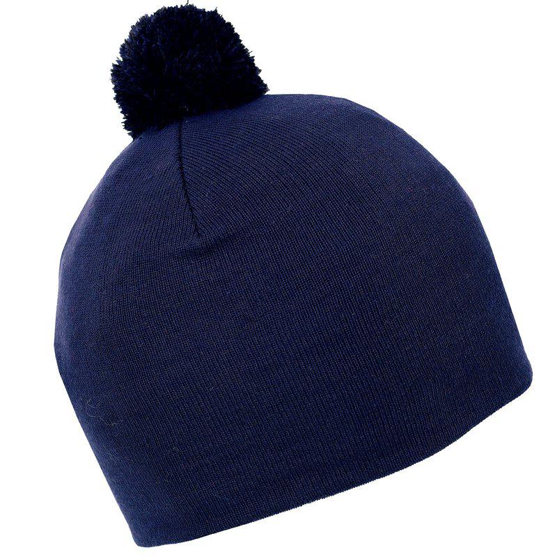 Eine gestrickte Bommelmütze mit absolut winddichtem Futter um die Ohren und dennoch atmungsaktiv am Oberkopf.