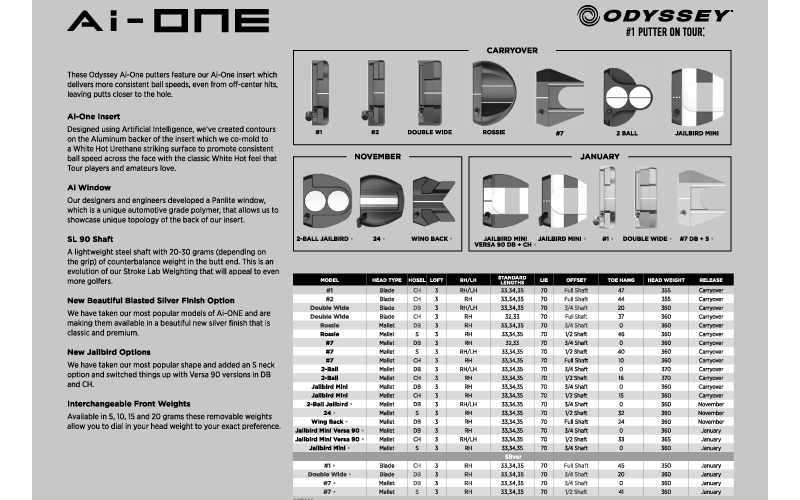 Diese Odyssey Ai-One Putter sind mit unserem Ai-One Einsatz, der für konstantere Ballgeschwindigkeiten sorgt, auch bei außermittigen Schlägen, so dass die Putts näher am dem Loch.
