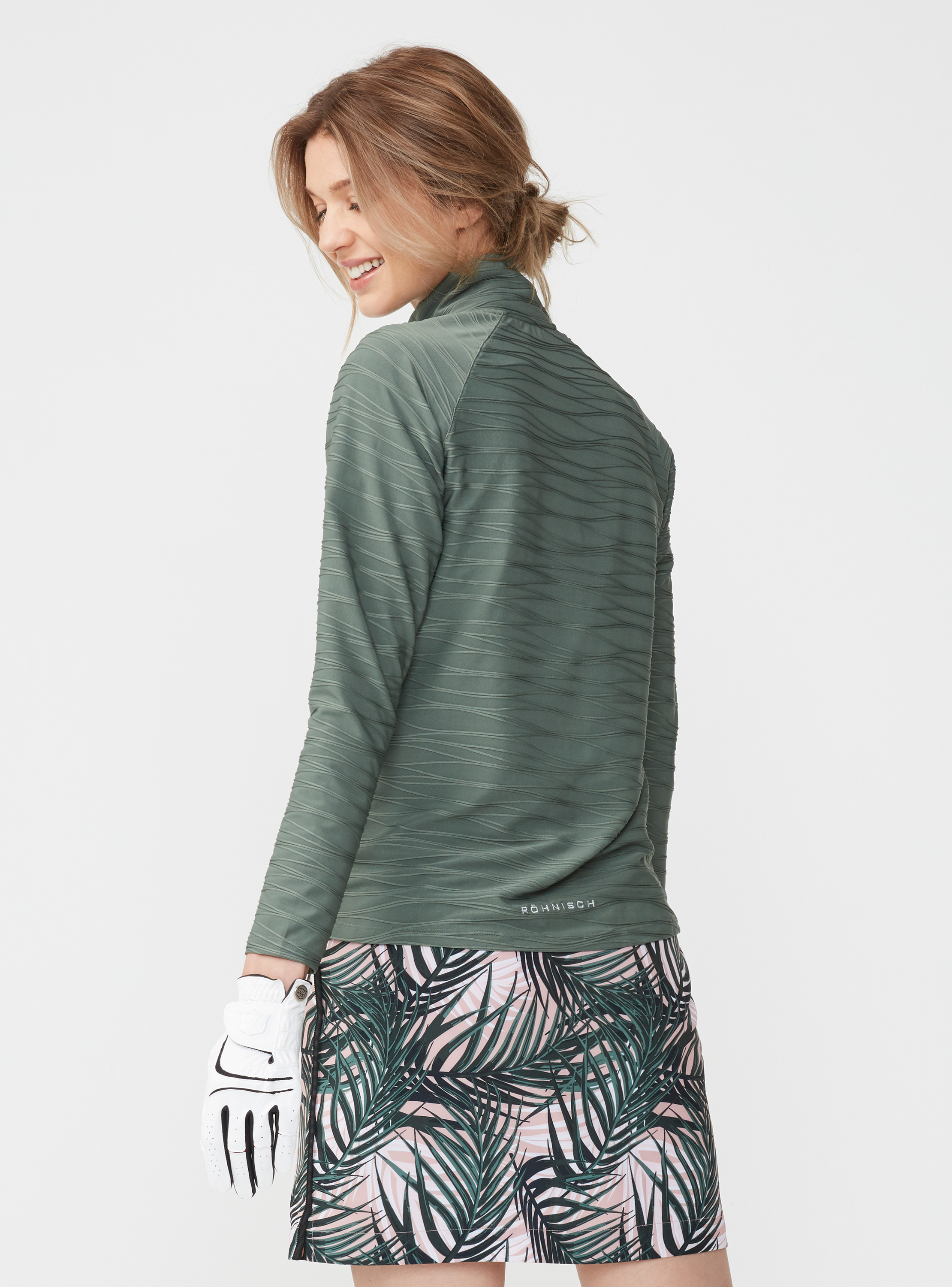 Langärmliges Golftop mit Reißverschluss und stilvollem Strickmuster. Dehnbares und weiches Material, das atmungsaktiv ist und Feuchtigkeit vom Körper wegleitet. Perfekt für den Golfplatz und ebenso gut für alle anderen Alltagsaktivitäten geeignet! Mit dieser Weste machen Sie auf jedem Grün eine gute Figur.