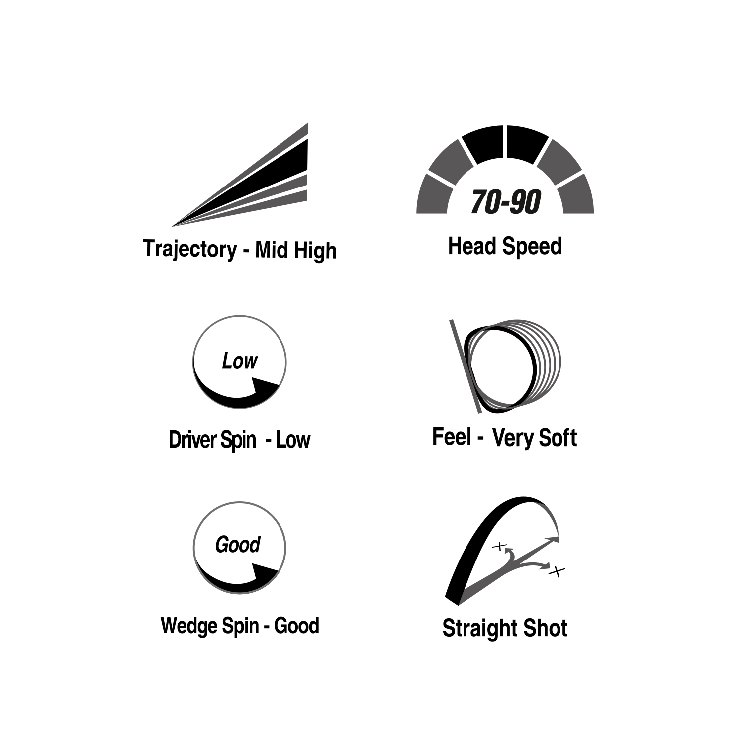 - Überlegene Flugweite mit niedriger Spin-Rate und hohem Abflugwinkel beim Abschlag des Drivers